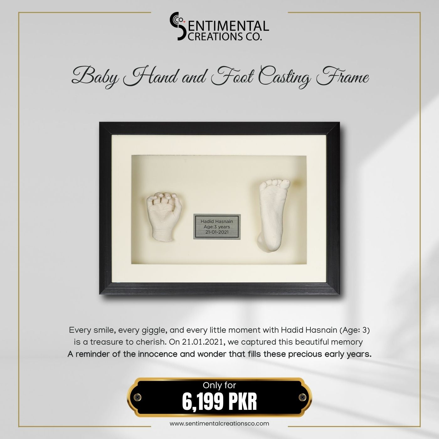 Capture the most precious details of your baby's early days with this beautifully crafted hand & foot casting frame. Designed to preserve those tiny impressions in stunning detail, it turns your baby's little prints into a heartwarming display piece for your home.