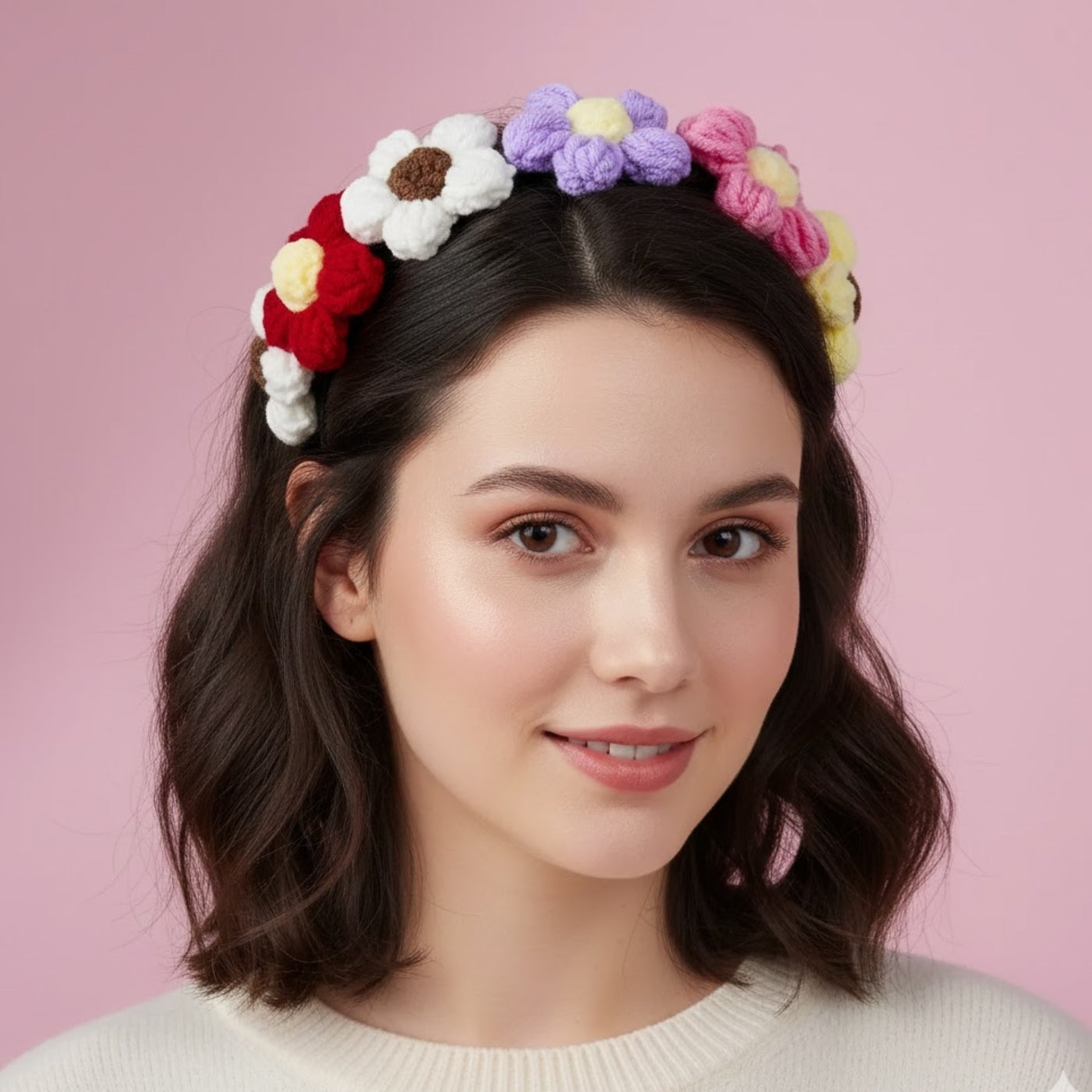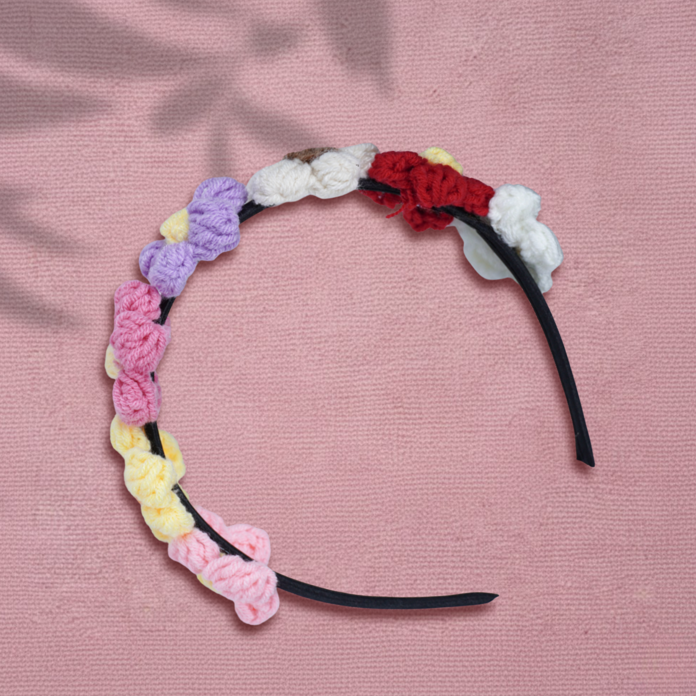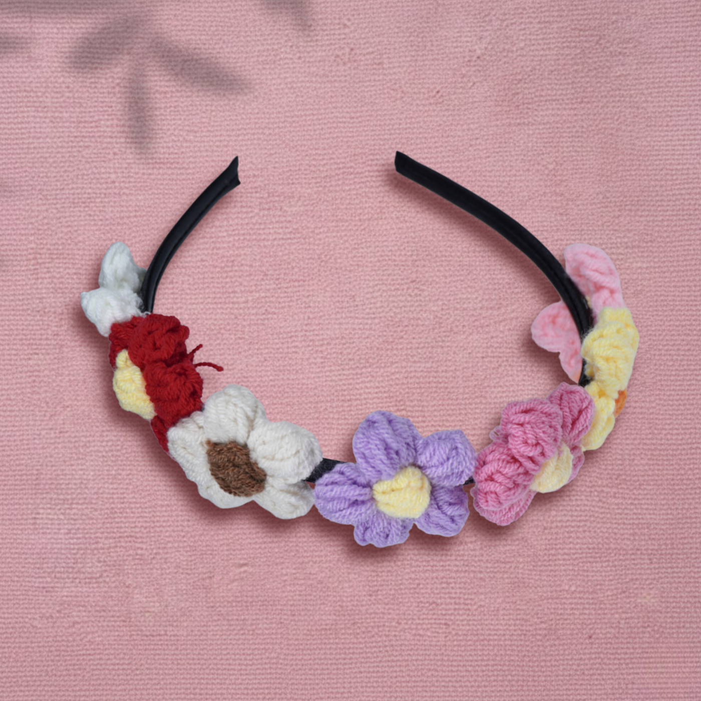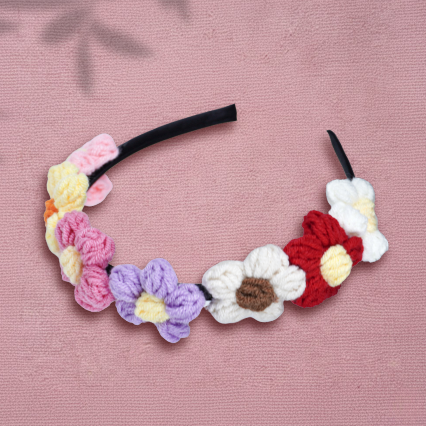 Inspired by handcrafted elegance, this crochet floral hairband brings a charming blend of colors and texture to any look. Each flower is carefully crafted with soft yarn, creating a playful yet refined accessory that stands out without overwhelming. Designed for a comfortable fit, it adds a touch of artistry to both casual and dressed-up styles.