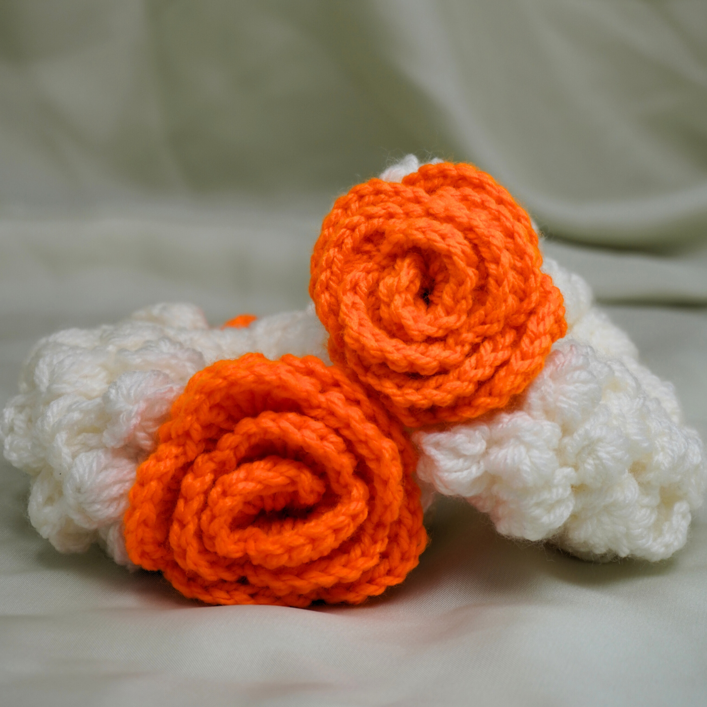 Playful Floral Design featuring alternating orange and white crochet roses for a cheerful, sun-kissed aesthetic.