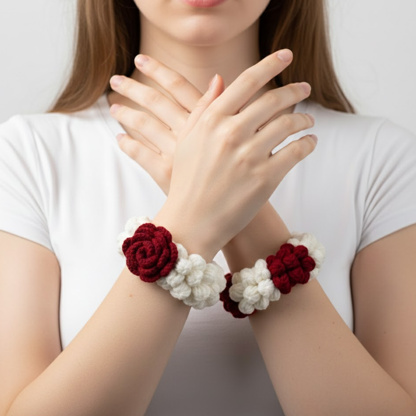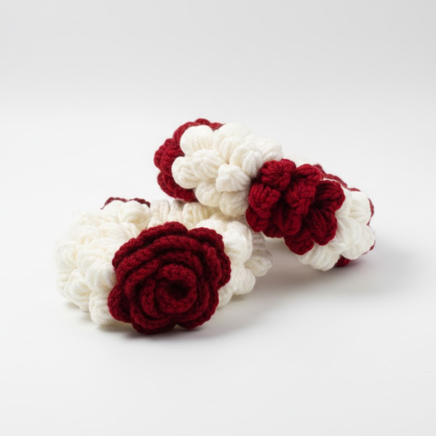 The Eternal Bloom Crochet Gajray Combo is a graceful celebration of tradition and craftsmanship. Handcrafted with soft, premium-quality yarn, these reusable floral gajras capture the beauty of fresh flowers while offering lasting durability and comfort.