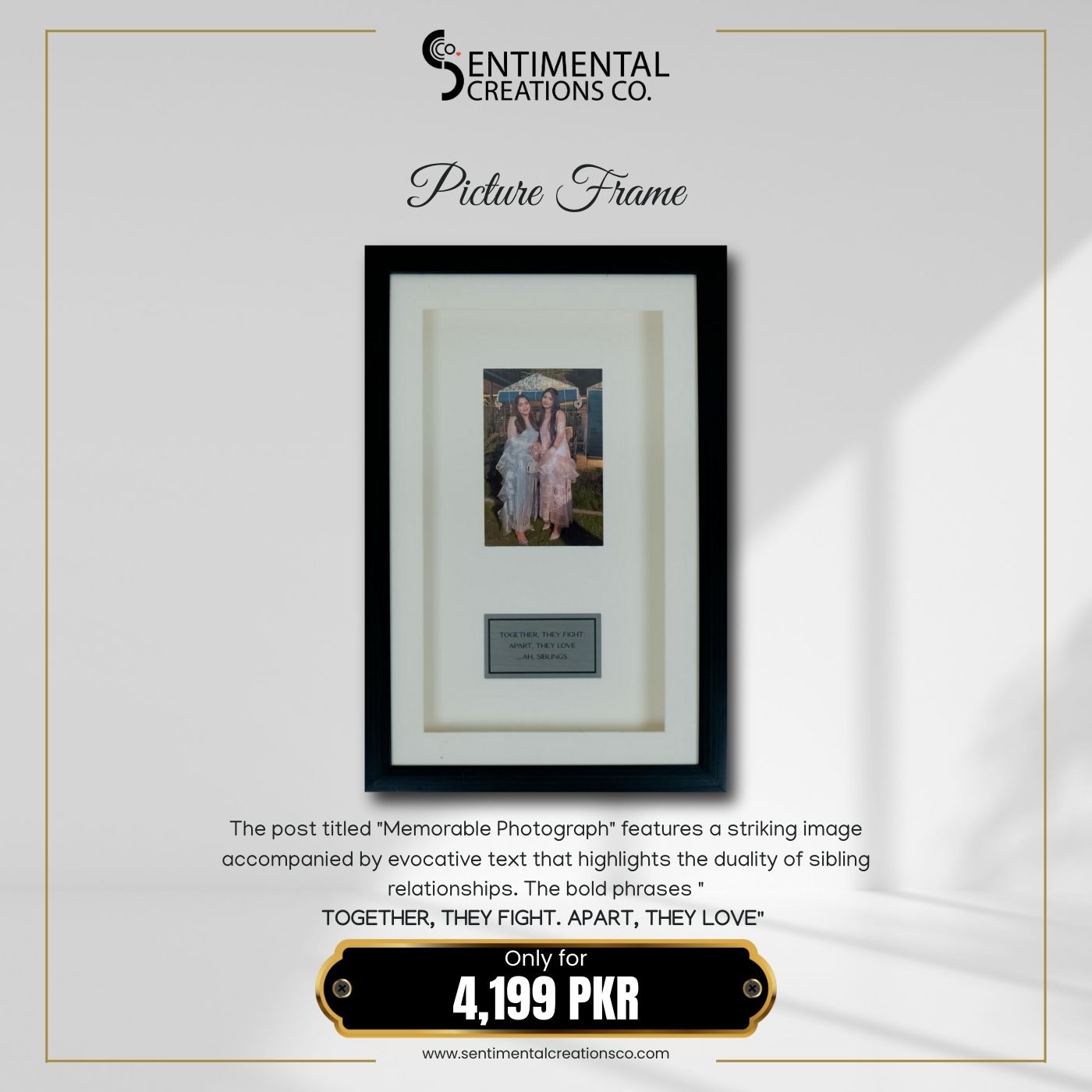Present your favorite photograph in timeless style with our elegant Picture Frame. Crafted with premium materials and clean design, this frame turns your most meaningful image into a refined centerpiece—ideal for home décor, office displays, or heartfelt gifts.