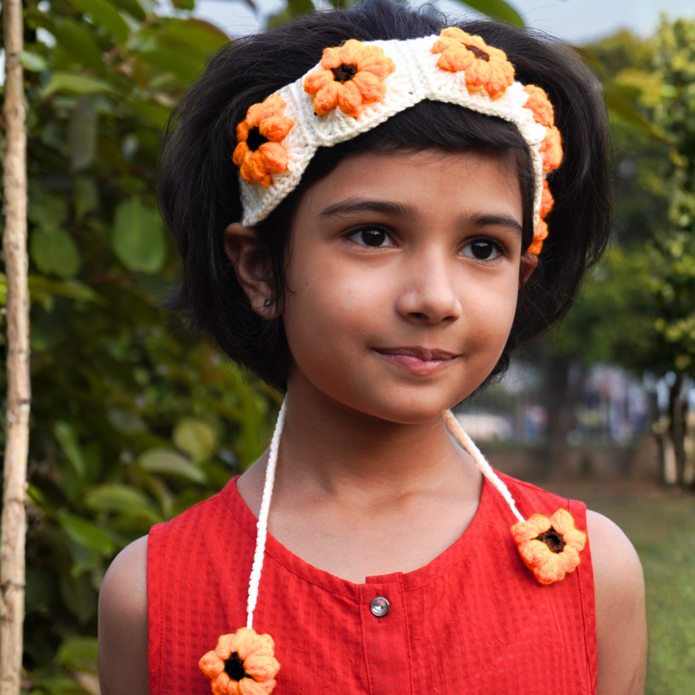 Radiating warmth and joy, this cheerful orange crochet hairband adds a playful, sunny touch to your look. Perfect for bright days and bright souls, it’s your little reminder to find color in every moment.